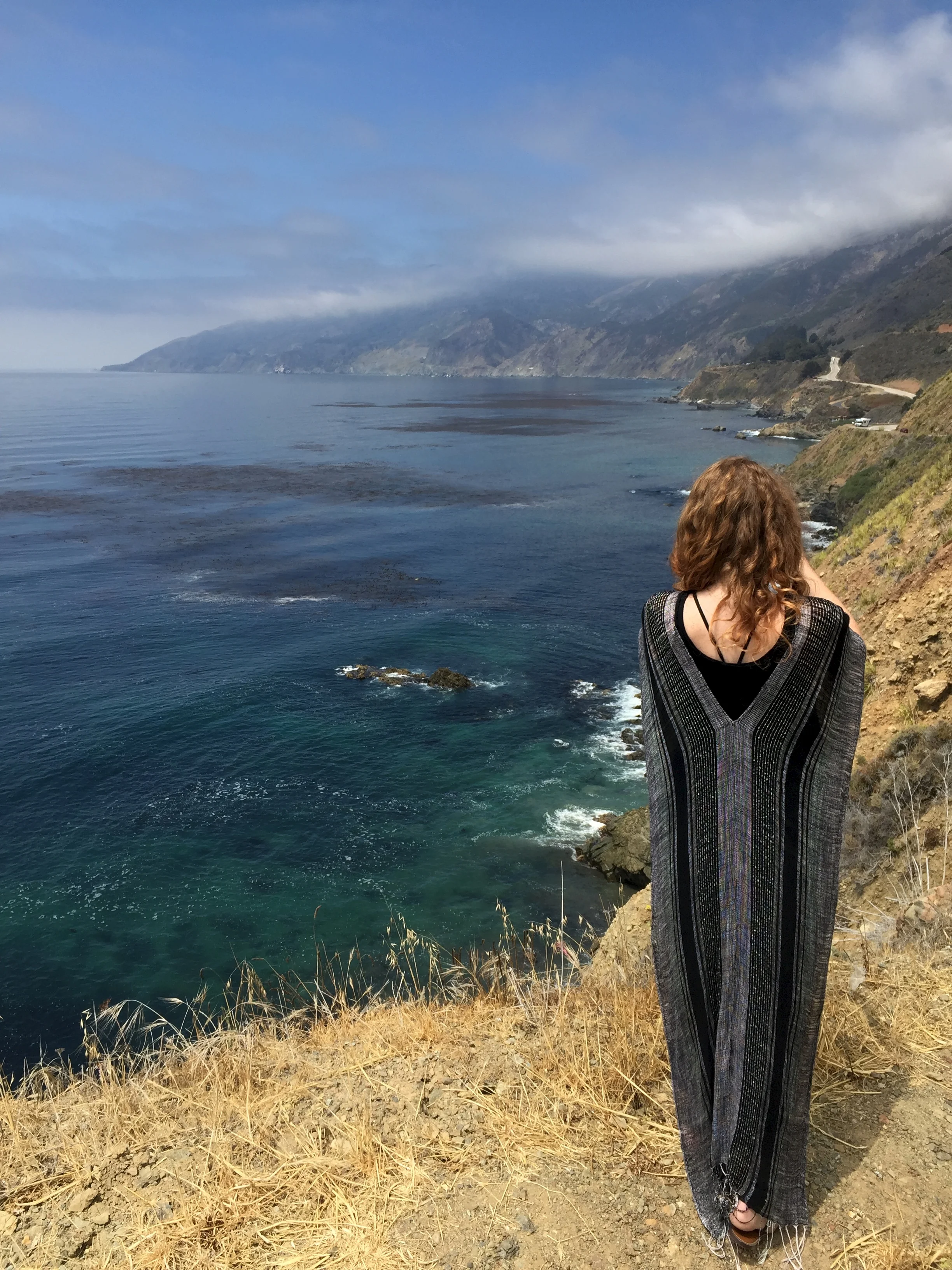 My brother Karl had stayed at and raved about Treebones, so we peeped that for shits and gigs, and while it wasn't the wonderland I was envisioning our peek was cursory. We drove through two campsites that were both completely full (Plaskett Creek and Kirk Creek--Plaskett Creek seemed pretty unimpressive, a big lawn with a lot of people and not a lot of plants to separate them). Somewhat disheartened, we drove on to Limekiln, which Rama's aunt and uncle had recommended. To our surprise the ranger said they had one site left, their walk-in site, which was pretty much right on the beach but also right under the big freeway (you'd better believe I morbidly envisioned a drunken midnight car careening off the bridge and down onto our sleeping tent). We deliberated awhile: locking down a site seemed prudent, and a beach sunset with bub a few feet from our campsite sounded pretty durned good as well, but we were still a ways south of the Big Sur hub we wanted to hit, and we'd be continuing farther north in the morning. And so we said nope to the back-and-forth driving, and, crossing our fingers we'd luck into another spot, hopped back on the 1, stopping at overlooks along the way to drool over the coastline.