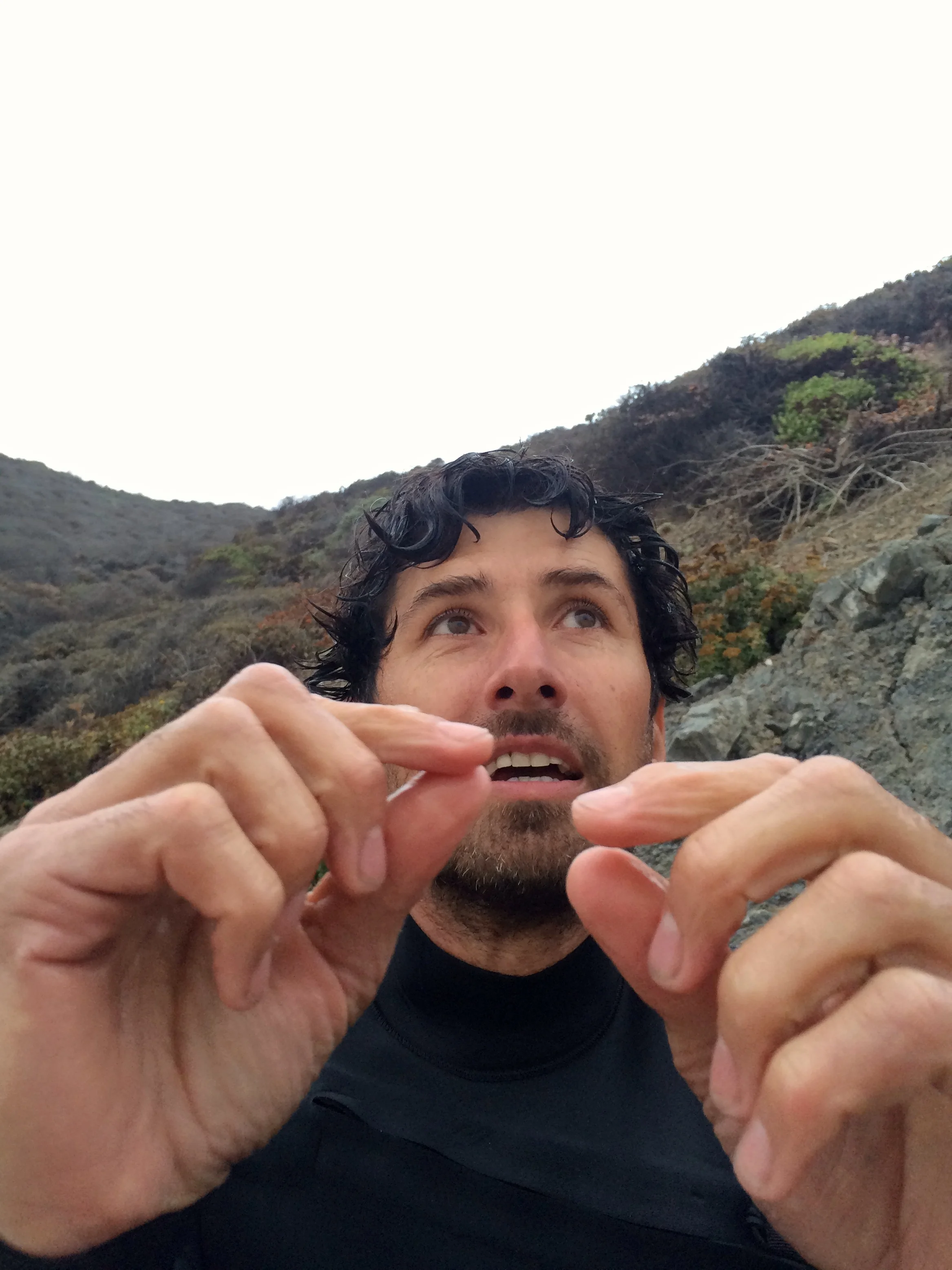 Rama describing the strange, small, crystalline, linked, jellyfish-type-things he was picking up in the water, which we have since ID-ed as salps, creatures actually more closely related to humans than to jellyfish. Fascinante.