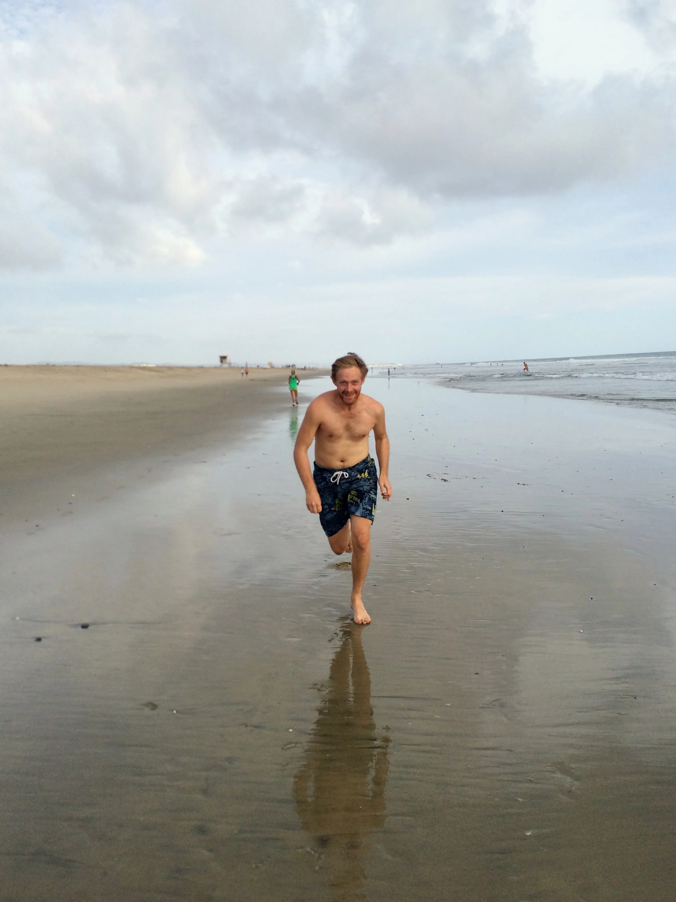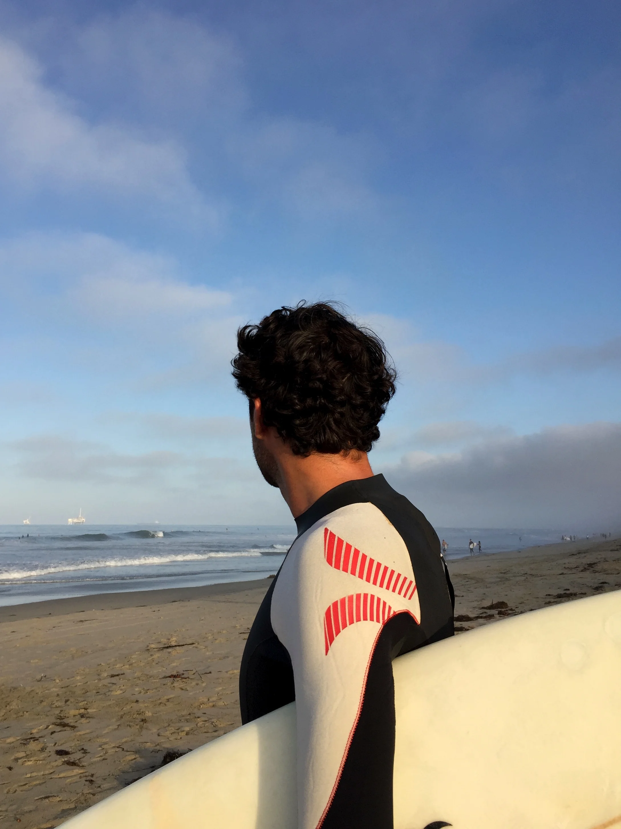 After some hours back to Karl's and Aliki's. Franz, Rama, and I hopped in the pool and played HORSE. I started out hot and then choked, Rama was just the opposite, and Franz was simply wildly talented. Then bed! The next morning we had Aliki's delish granola and other noms, coffee, mimosas--she really mostest-ed us during our visit. Rama gave some plant advice, I enjoyed my book, Kurt read Dad an awesome article about Vin Scully, Eric and Maria stopped by, and then mid-afternoon we headed back to Huntington. Franz, who had finished his final final Friday and is now officially a college graduate, drove to Riverside to pack up his stuff, and Rama and I met Kurt at the beach so they could surf and boogie board respectively. They did that, and then Rama and I grabbed a better but still pretty sub-par marg at a different Main Street spot (I was never of drinking age in HB, so I'm totes ignorant about the bar scene). We were at BJs waiting for our also sub-par to-go pizzas when I got the news from Mom that she'd found pot paraphernalia and a keg handle in Franz's car (he'd taken the van to Riverside and she was cleaning out his car to be nice). So that was not great, but Mom and Dad took it in stride more or less, and we passed a pleasant enough evening. Another dawn, another patrol. Rama didn't end up surfing but did paperwork while I snuck in a run. It was a beautiful cloudy morning that started to sunny-up when I was done, perfect timing for ye olde post-run swim (which is, for the record, The Best Thing).