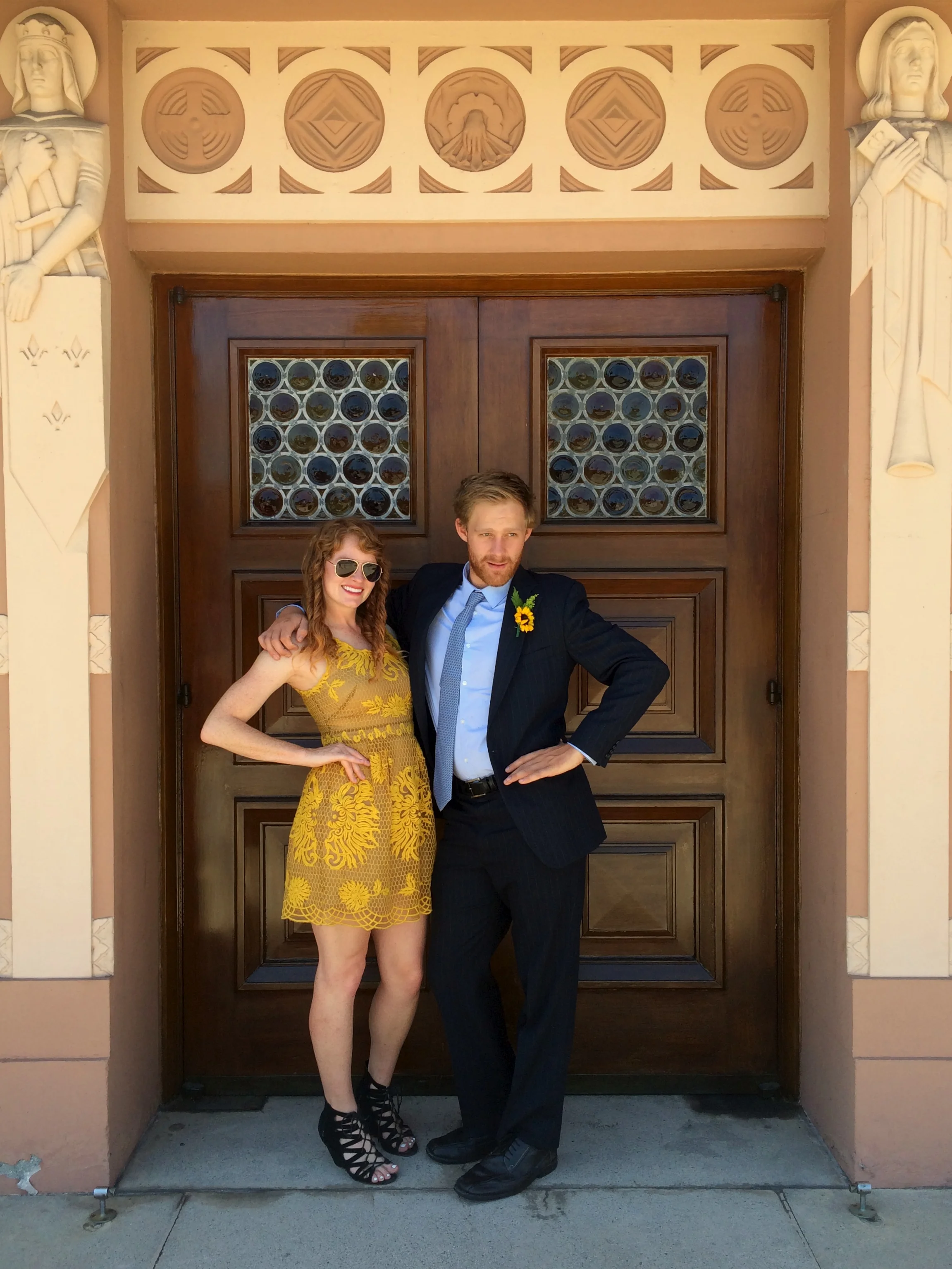 We took some pics in and then outside the church (Mom's outfit matched the building so well it was nuts), and then went to Karl's and Aliki's to enjoy some AC and homemade tamales until it was reception time.