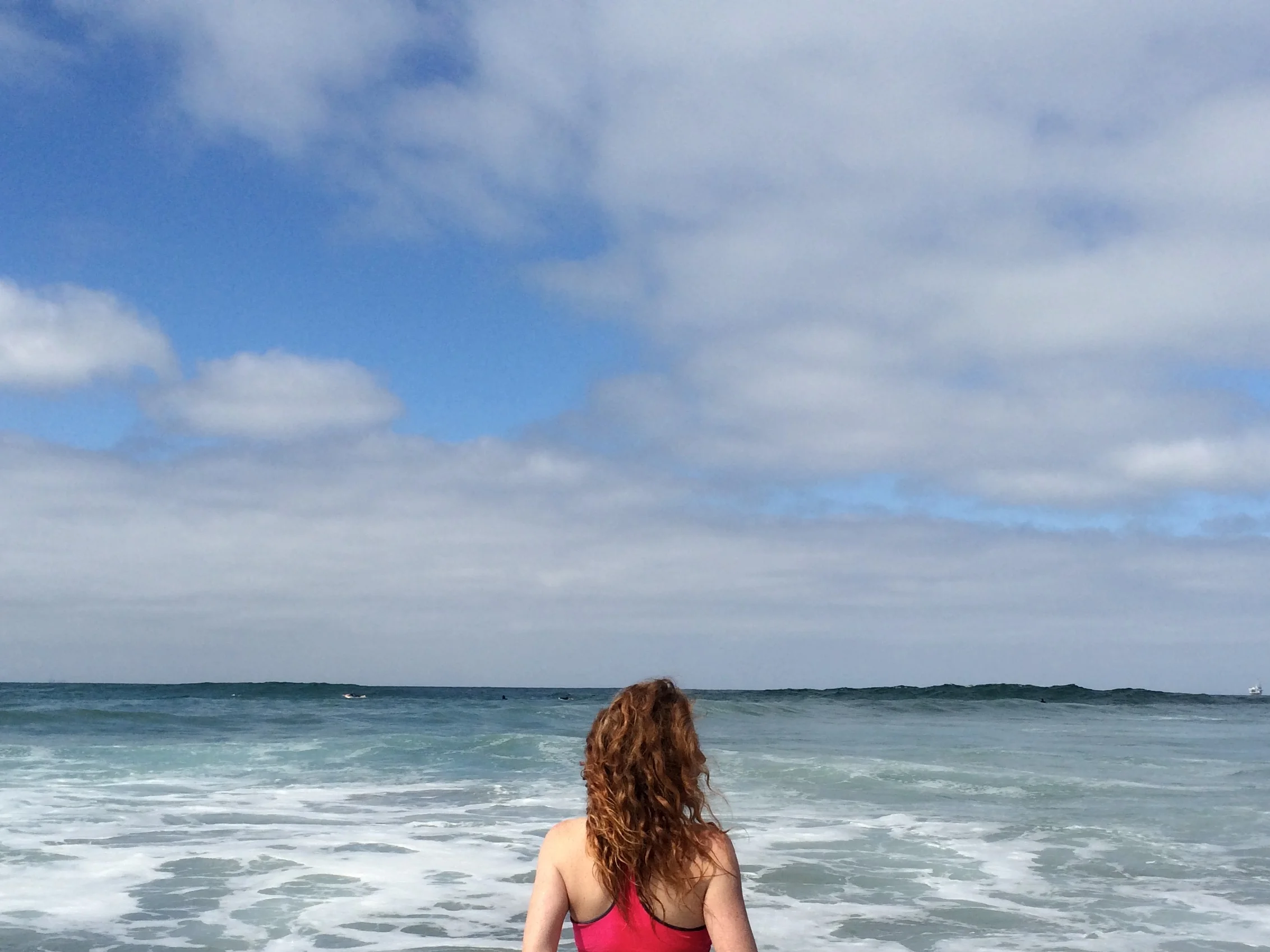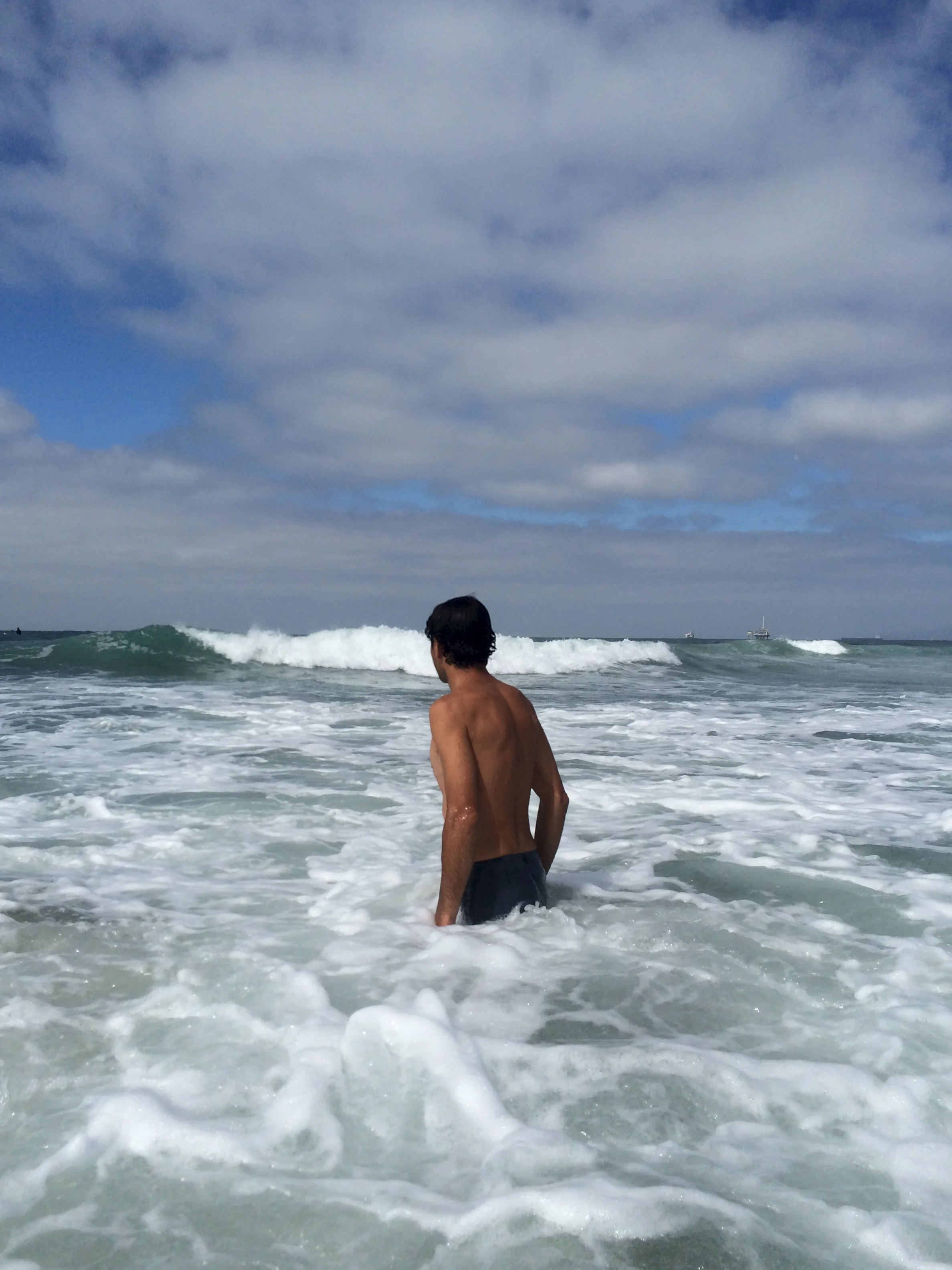 I passed the rest of the day deep-cleaning and trying to make some room for the influx of Franz's Riverside stuff. He arrived home and there was the anticipated showdown about the marijuana stuff, which ended less apocalyptically than I was fearing. Dinner was tacos--Yum, Always. The next day was our last. In the afternoon Franz went with Rama and me on a last beach run. The light was awesome and the ocean temp continued to be criminally comfortable. We'd been mostly near the pier this trip because cowabunga, but this time we parked at Magnolia and walked down to the State Beach. That's the spot we usually run from and swim at--it's significantly less crowded than the City Beach and has a more old-school HB feel. It was very fun, but the surf was strong for me. I swam a bit, got tumbled and trounced a handful of times, and, seeing the waves were only getting bigger, headed in. Franz and Rama body-surfed a bit longer, got scolded by a lifeguard for being too far out, then sulkily joined me on the beach.
