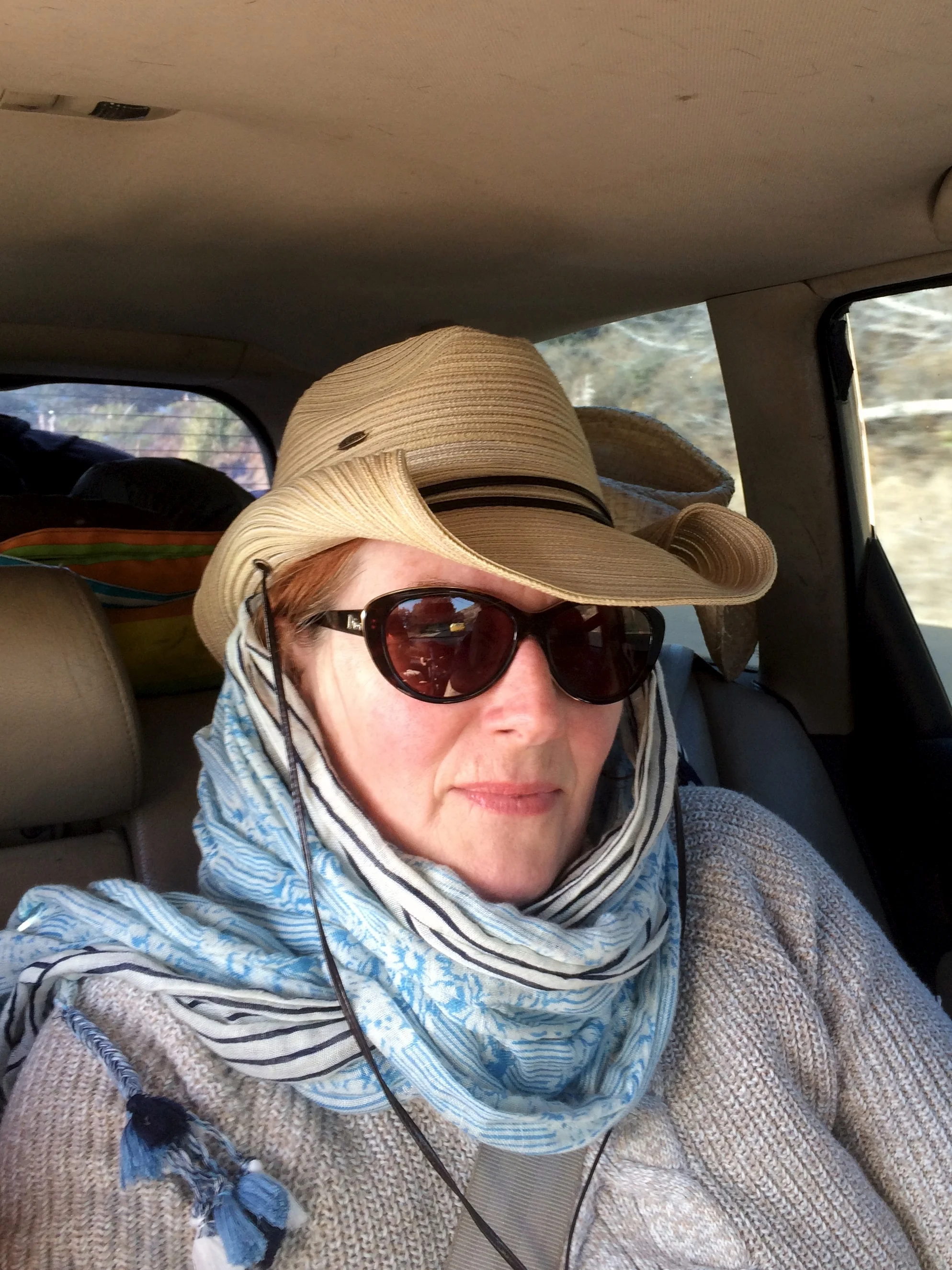 Ma wearing her special kiche kamping kerchief komplete with built-in hoop earrings. That woman.