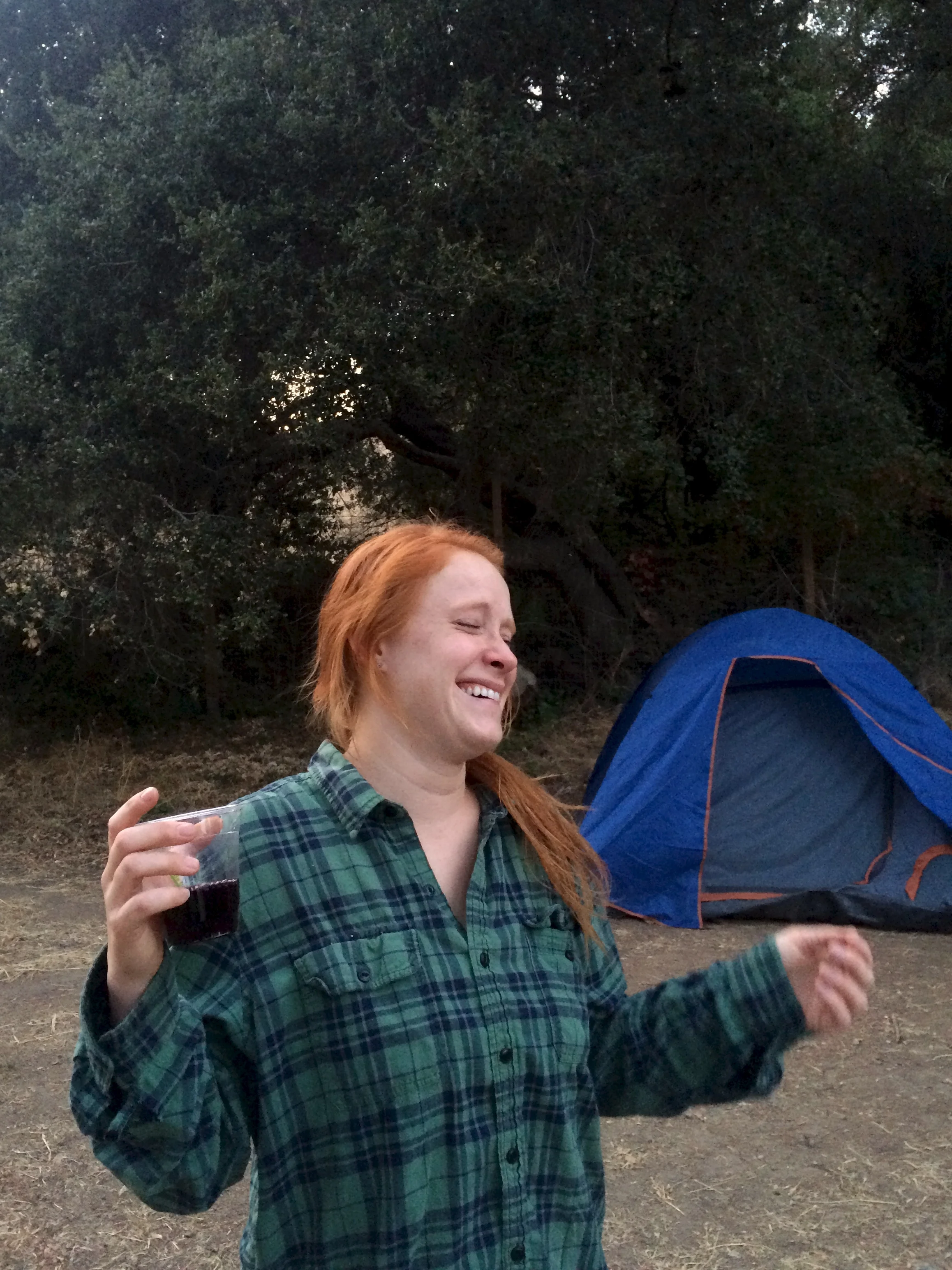 That night Nanny, Auntie Lisa, Peggy, Rachel, and Kurt came over for pies (berry and coconut cream), and we shot the shit a while, but I was beat and not too late hit it for our crack-of-the-ass flight. It was super sad as always saying bye to Dad and Franz and Marie and the doggies, but on the fun side Mom flew back with us to O-town for a work meeting/little business visit. (Side note: I'd guessed I'd zoom through the second and third Elena Ferrante books during the trip, and as predicted finished the third on the flight back. I'm still not sure what I think of them, but they're certainly compelling and I'm anticipating reading final installment.) Anyway, it's a very cool part of Ma's job that she gets to come stay with us for a few days every couple months. We had an especially fun plan cooked up this time around--a Cat Power concert and camping in Santa Cruz. We headed down Friday afternoon--early enough to beat the traffic--and hit up our campground.